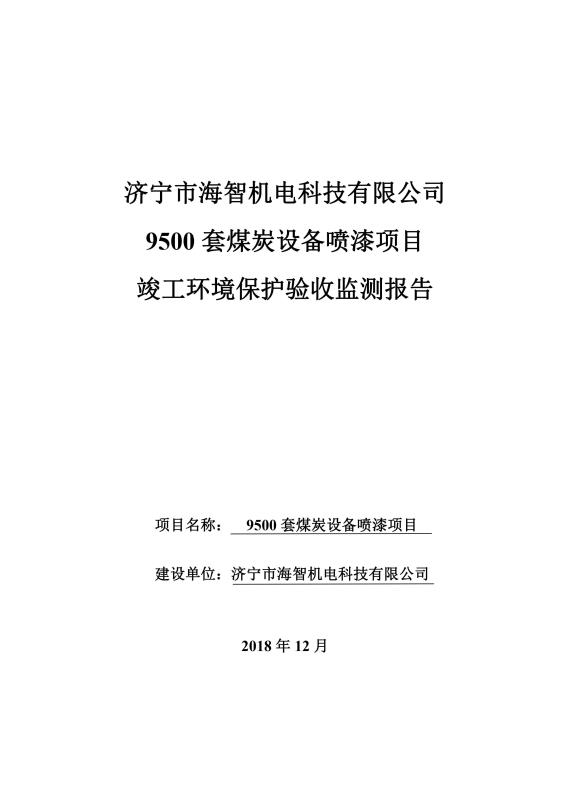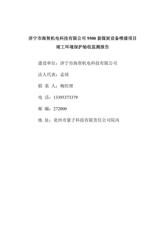 > 安徽9500套煤炭設(shè)備噴漆項(xiàng)目竣工環(huán)境保護(hù)驗(yàn)收監(jiān)測報(bào)告