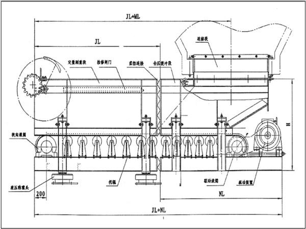 稱重計量給料機設備分為倉壓緩沖段及定量測重段兩段,而兩端中間采用柔性件進行連接。稱重計量給料機的倉壓緩沖段和地基固定在一起,以此來承受倉壓。而定量測重段的豎直方向一直處于浮動狀態(tài),全部重量都壓在四個液壓稱重頭上,以此來達到恒定給料的目的。稱重計量給料機具有性能平穩(wěn)可靠、噪音小、經(jīng)久耐用等特點。