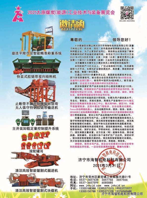 > 邀請函:第二十屆2021太原煤炭(能源)工業(yè)技術(shù)與裝備展覽會